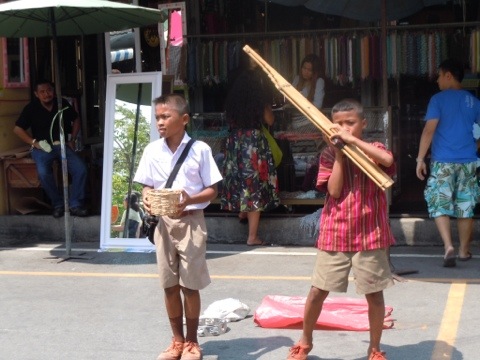 Last day in Bangkok! We were up and packed and out of the hotel by 10:30am, a new record so far. Leaving our bags at the excellent hotel, we hopped on the BRT to Chatuchak weekend market. “Big” doesn’t even begin to describe it. Rows upon rows of stalls sling everything and everything that you could imagine abound, from fashion (originals, trendy items and knock-offs) to furniture to food.