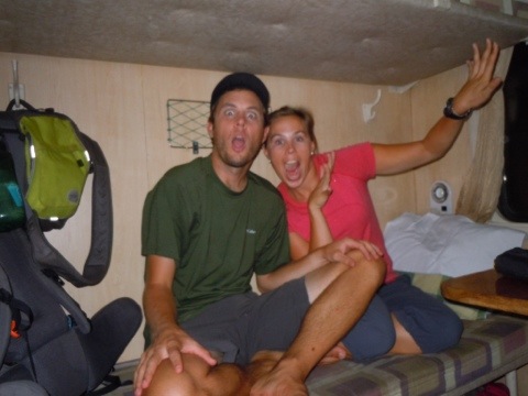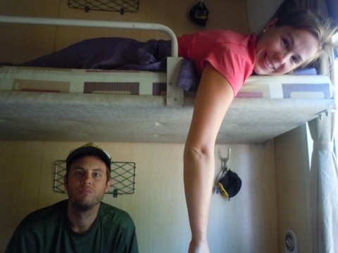 Our berth was easy to find and we quickly scooted in, stowing our bags under the lower bunks and examining our surroundings. We thought, for a moment, that we might have the cabin to ourselves, but we were soon joined by four men and a little girl. My first thought was, “oh no–we’ve been sold double booked tickets, we’re going to be kicked off the train, we’re going to have to wait another night…” Then, as the men deposited boxes and suitcases, it became clear that they were just dropping the man and his daughter off; we’d only have two, not five, roommates for the night.