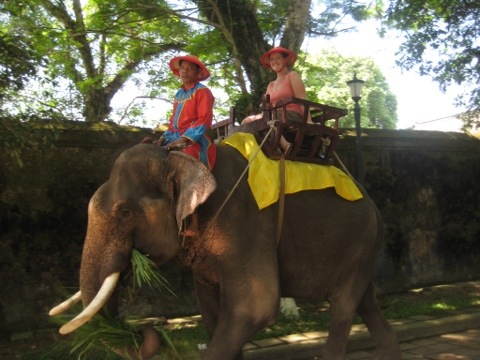 I thought this was the perfect chance to get a ride, especially in the Old City, the former seat of Vietnam’s capital. I patiently waited my turn, graciously stepping back when two little girls and their dad were ushered ahead of me by their tour guide (well, I didn’t say anything. But my face shows everything, so I think the pushy tour guide got the point. I tried to be gracious with my face). Finally, it was my turn and I was on the elephant, swaying gently along with his lumbering strides, just like I’d imagined.