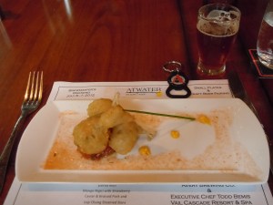 The fun factor in these pairings is evident—I can just imagine Bemis going back into the kitchen with a sampling from Avery and saying, “okay, guys: go nuts.” Not only were the plates pleasant with the beer, but the tongue-in-cheek names of the dishes reflected the creativity in the kitchen.