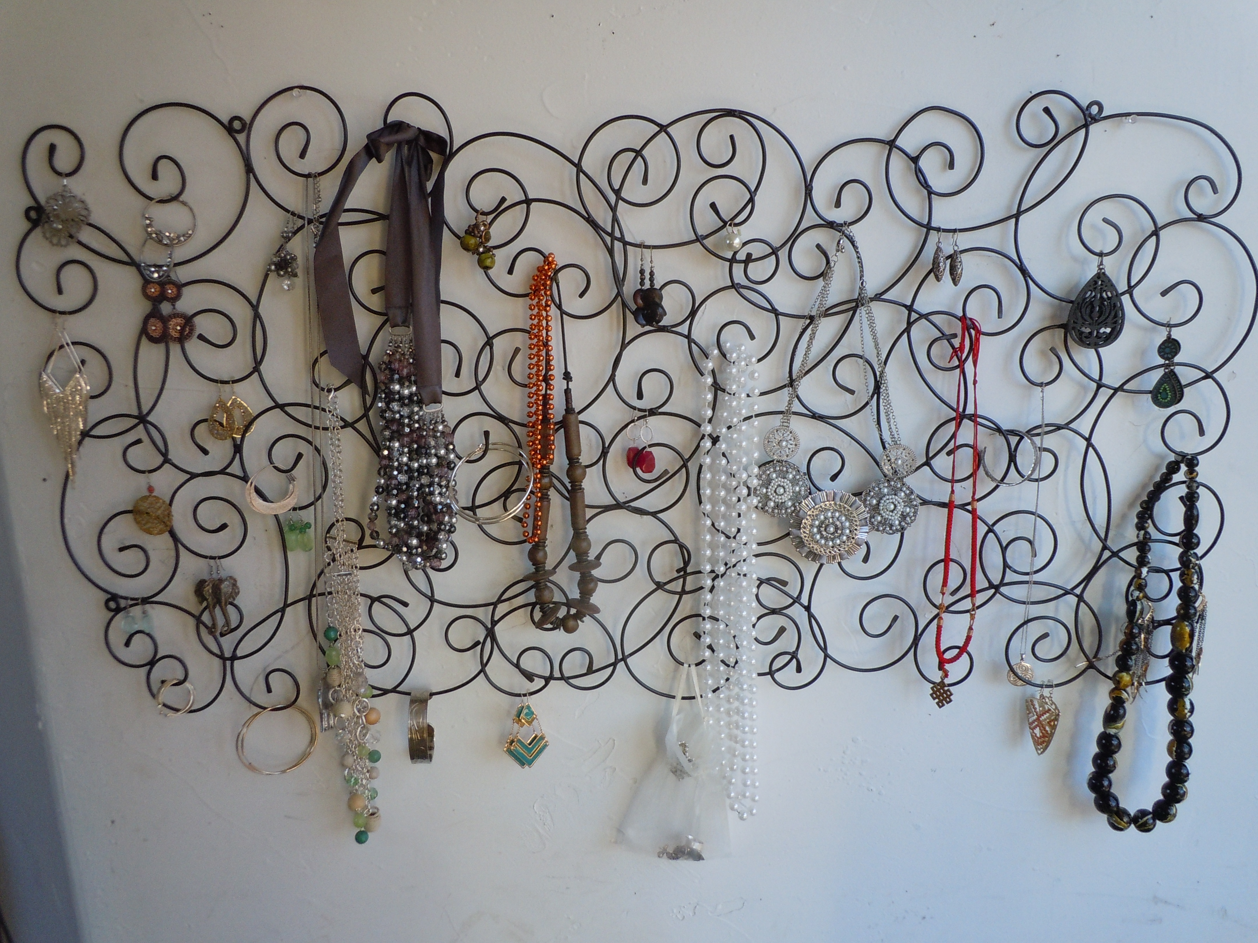 Ta da! The bends are the perfect place to hang earrings and necklaces. For the smaller pieces and rings, I put them in a small pouch and hang that, too.