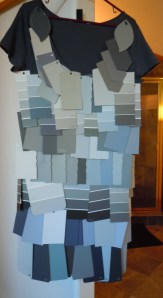 • Lay out the dress and assemble the paint samples in rows. I wanted it to look like fringe, so that’s how I arranged them, but it’s completely up to you.