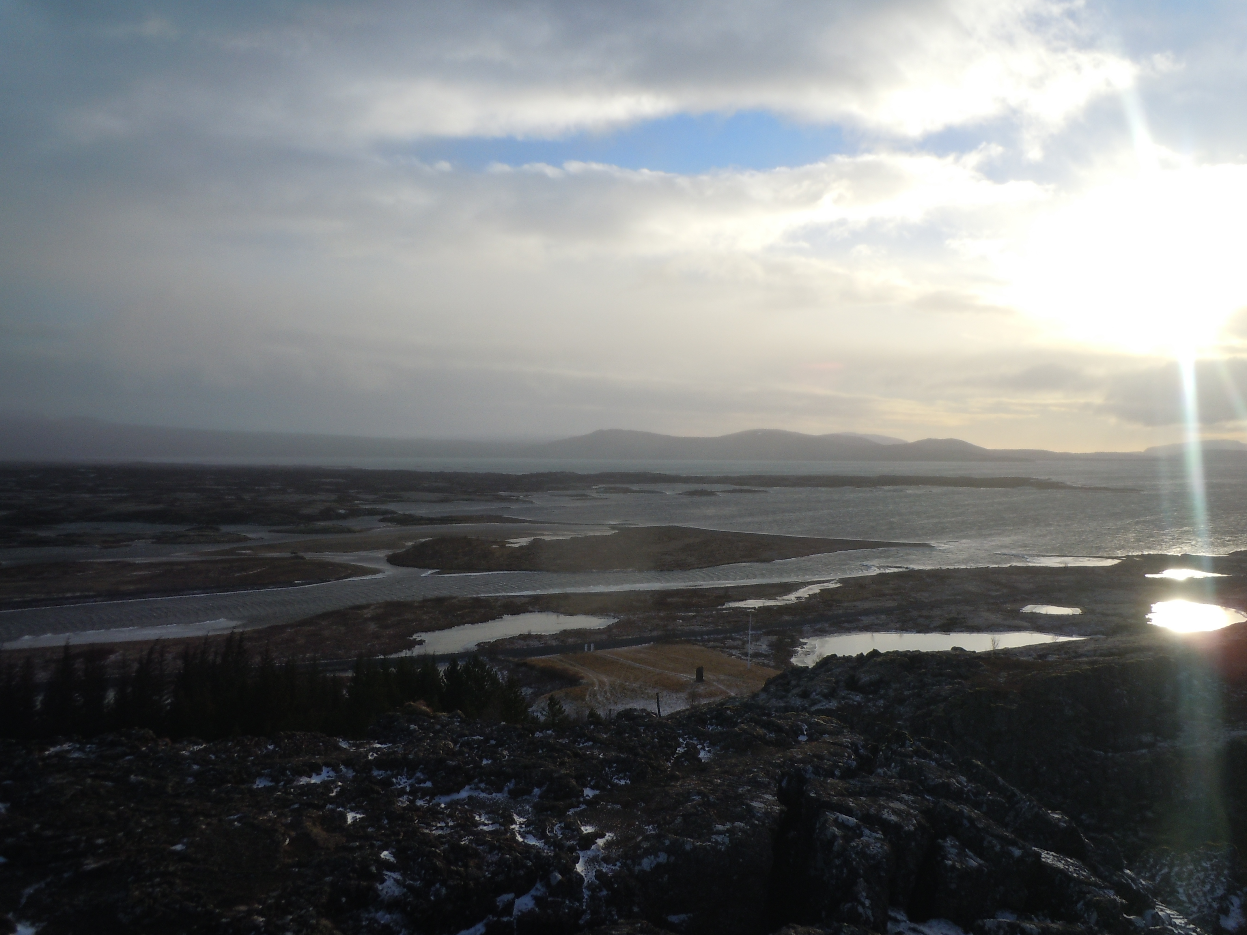 First stop: Þingvellir National Park. The site of Alþingi, Iceland’s parliament founded in 930, Þingvellir is more than just a historical site. The park itself is huge, with lakes and wide stretches of plains and very few people. The information center, where many of the tour buses stop, have a short walkway that allows you to gaze out at the vastness in front of you. If it’s windy, as it was when I was there, you can also try out your Weather Channel hurricane pose. You know the one: leaning at 45° to the ground, attempting to keep your feet?