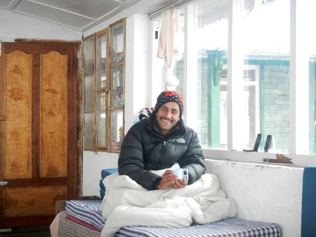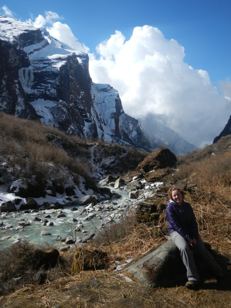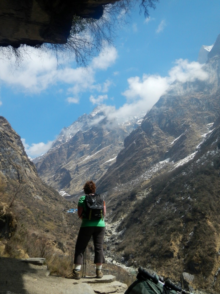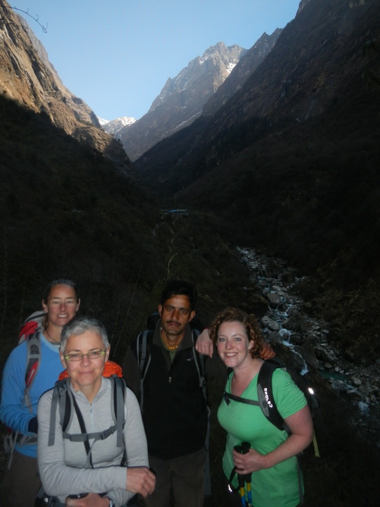 Nepal has a way of breaking me down, body and mind, but not spirit. On day four, I have done more than I thought I could, but I realize what is yet to come. I felt amazing hiking into Dobhan, but the trek up to Himalaya for a mid-morning tea break has me silent, clutching my tea cup. I’ve caught a cold that went from a runny nose to a cough that seems to be settling in my chest, leaving me sounding like a tobacco warning. I feel like my blood has betrayed me, that my time in Colorado should count for something in relation to the rising altitude, but I’m starting over with no advantage.